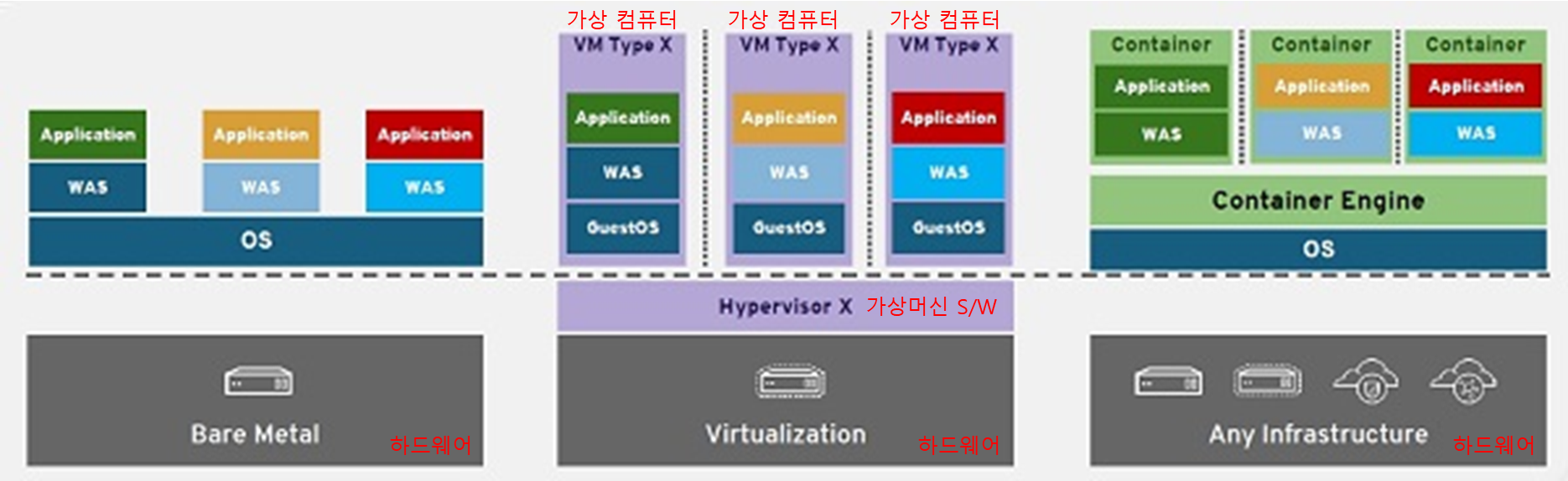 처음(Bare Metal)에는 소프트웨어가 설치되지 않은 일명 깡통 시스템에 소프트웨어를 직접 설치해서 운영했어